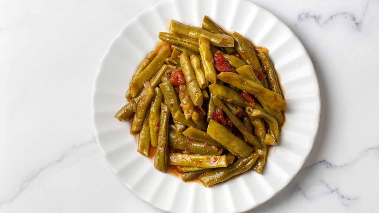 Taze fasulyelerin uçları alınarak ikiye bölünür. Soğanlar ince ince doğranır ve zeytinyağında pembeleşene kadar kavrulur. Doğranmış domatesler eklenerek birkaç dakika pişirilir. Fasulyeler ilave edilir, tuz eklenir ve üzerini geçmeyecek kadar sıcak su eklenir. Kısık ateşte fasulyeler yumuşayana kadar pişirilip soğuk olarak servis edilir.