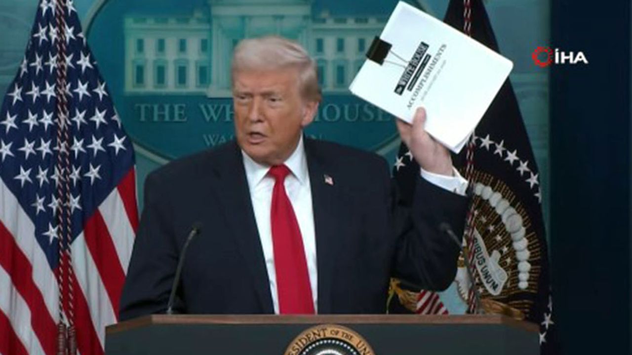 Beyaz Saray’daki basın toplantısında bir yıl boyunca atılan adımlara ilişkin değerlendirmeler sunan Trump, aralarında Amerikan tarihinin en yüksek seviyesindeki enflasyonu normal seviyeye düşürülmesi, sınır güvenliğini artırarak düzensiz göçü sıfıra indirilmesi ve tarifeler ile dış ticarette denge tesis edilmesi dahil birçok önemli adım atıldığını anlattı. ABD’nin tarifeler kanalıyla muazzam bir ulusal güvenlik ve gelir elde ettiğini söyleyen Trump, "Ticaret açığını yüzde 62 azalttık. Gelecek yıl ticaret açığımız olmayacak" dedi. Tarihin en büyük vergi indirimlerini gerçekleştirdiklerini, ABD’de ilaç fiyatlarını yüzde 300 ila 600 oranında indirdiklerini, denizden gelen uyuşturucuyu yüzde 97 oranında azalttıklarını, deniz korsanlığına son verdiklerini anlatan Trump, "Bunların hepsini Amerika'yı yeniden büyük yapmak için gerçekleştirdik" dedi.