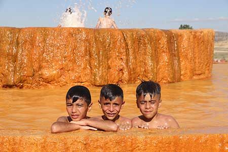 Sivas kent merkezine 30 kilometre uzaklıkta bulunan Altınkale ziyaretçi akınına uğruyor. İsmini renginden alan Altınkale, Pamukkale travertenlerine olan benzerliğiyle dikkat çekerken ziyaretçi akınına uğruyor. Pamukkale’nin kardeşi olarak görülen yapay alan, yer altından çıkan termal suyun bıraktığı altın renkli travertenlerden oluşuyor. Birçok kişi fotoğraf çektirmek için bölgeyi tercih ederken, gelen ziyaretçiler şifalı suya girip hem eğleniyor hem de manzaranın tadını çıkartıyor.