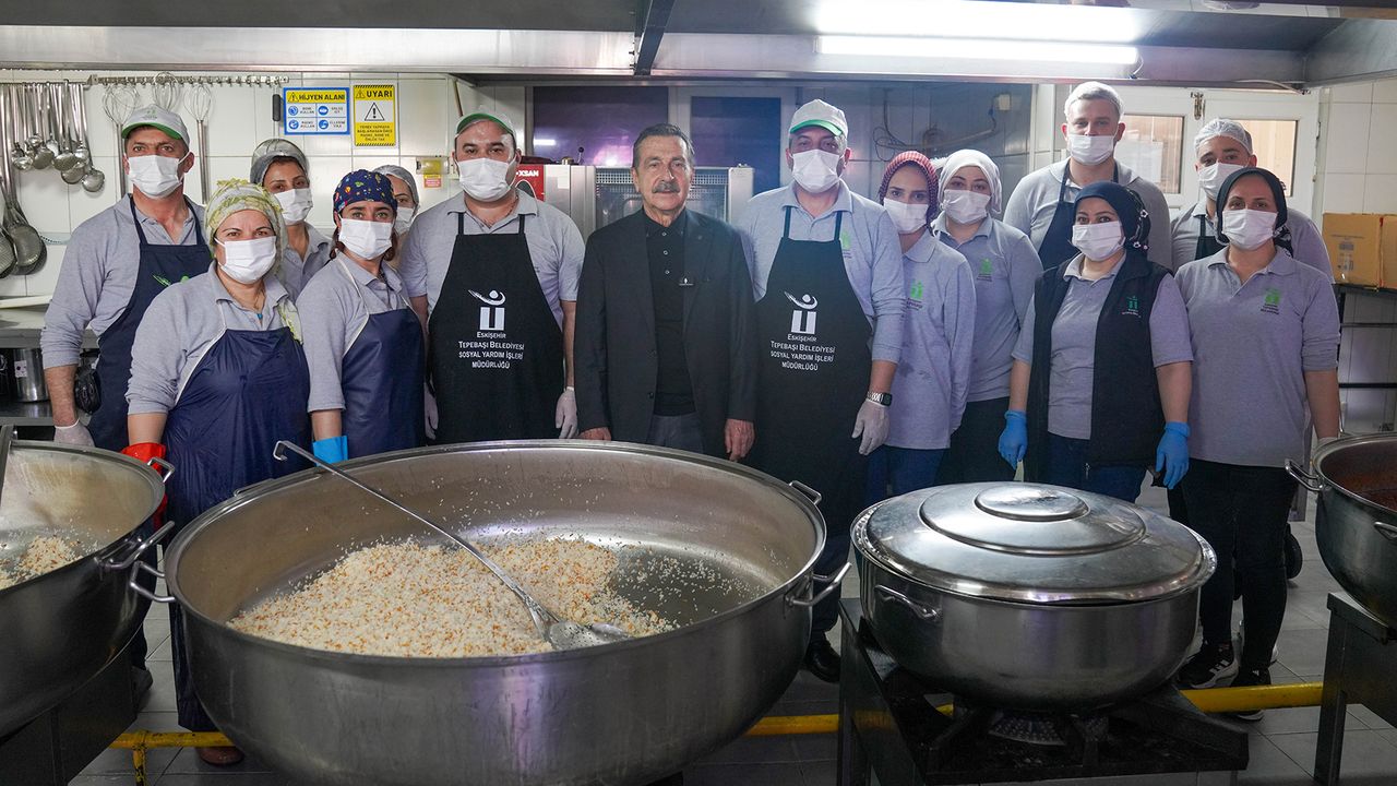 Ramazan boyunca “İftarımızı Paylaşalım” sloganıyla faaliyetlerini sürdüren aşevi, ihtiyaç sahibi, 65 yaş üstü ve kronik hastalığı bulunan vatandaşlara sıcak yemek ulaştırmaya devam ediyor. Tepebaşı Belediyesi Sosyal Yardım İşleri Müdürlüğü’ne bağlı olarak hizmet veren aşevinde hazırlanan yemekler, belediye ekipleri tarafından evlere servis edilerek vatandaşların sofralarına taşınıyor.