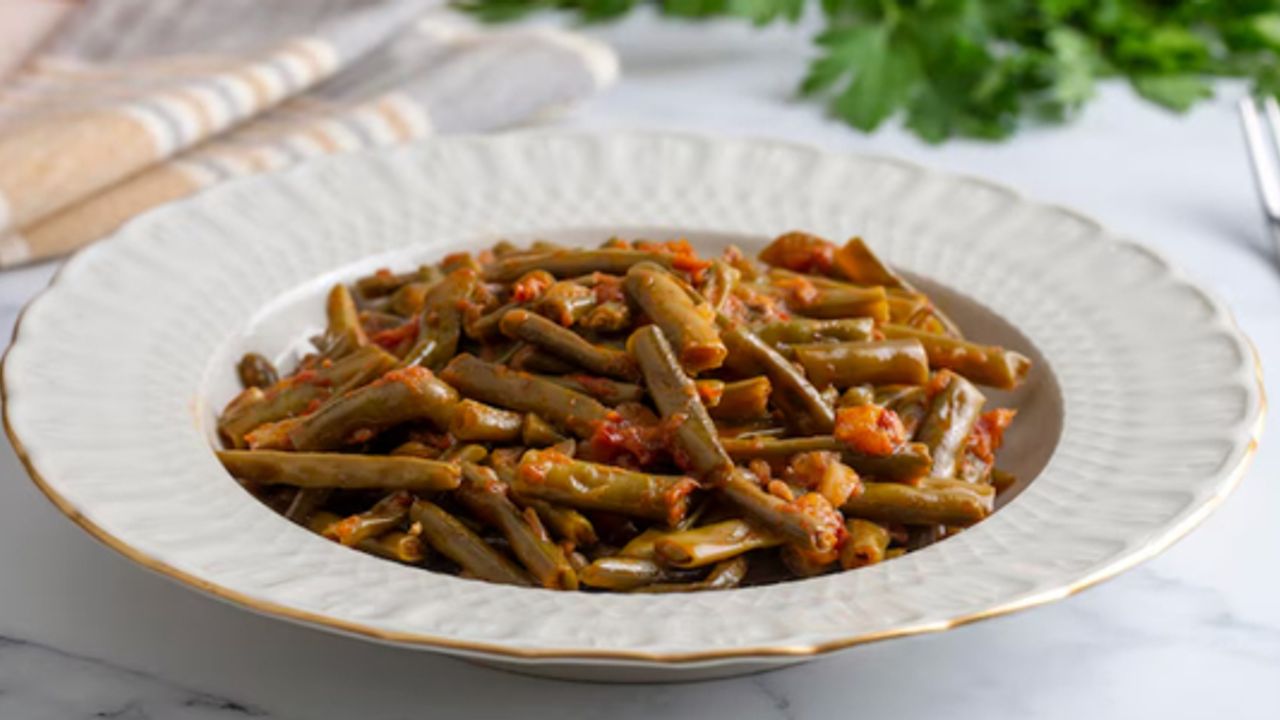 Soğanlar kavrulur, fasulye ve domates eklenir. Kısık ateşte pişirilir. Soğudukça lezzeti artar.
