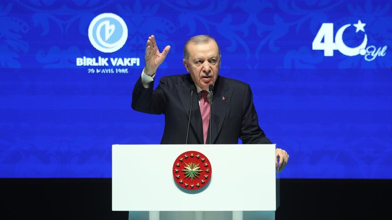 Muhterem başkanlarımız Yaşar Karayel ve Mehmet Alacacı'nın şahsında, vakfımızın kurucular kuruluna, mütevelli heyetine yine burada başarı dileklerimi ileten Cumhurbaşkanı Erdoğan, "Teşekkür ediyorum. Rabbim emeklerinizi zayi etmesin. Çabalarınızı, gayretlerinizi, döktüğünüz şu alın ve fikir terini inşallah hayra tebdil eylesin diyorum. Arkadaşlarım, bir defa şunu büyük bir bahtiyarlıkla ifade etmek istiyorum. Şahsımın da kurucuları arasında yer aldığı Birlik Vakfı özellikle eğitim ve kültür alanında 40 yıldır mühim bir misyonu, hamdolsun, başarıyla yerine getiriyor. 50 ilimizdeki 55 şubesiyle, barınma hizmetlerinden burs desteklerine, bilim, kültür ve sanat faaliyetlerinden yabancı dil kurslarına, oldukça geniş bir yelpazede gençlerimizin elinden tutuyor, onları yarınlara hazırlıyor, istikbalimizin güvencesi olan genç arkadaşlarımıza rehberlik ediyor. Konferanslarıyla, panelleriyle, matbu ve dijital yayın faaliyetleriyle, farklı ihtisas alanlarındaki yirmiyi aşkın komisyonuyla Birlik Vakfımız ilim, kültür ve irfan hazinemizi maziden atiye ulaştırıyor. Buradaki arkadaşlarımız milli ve manevi değerlerine sıkı sıkıya sarılan, bilgisiyle, eğitimiyle, ufku ve karakteriyle karanlıklar içinde ışıl ışıl parlayan bir gençliğin yetişmesi için 40 yıldır elinden geleni yapıyor. Vakfımızın niyeti hayır olduğu için hamdolsun, cehdi de emeği de gayreti de hayırlı neticelerle taçlanıyor. Merkezinde birlik anlayışının yer aldığı bu ocaktan yetişen kardeşlerimiz bugün siyasetten iş hayatına, akademiden bürokrasiye, her alanda Türkiye'ye alınlarının akıyla hizmet ediyor. Tüm zorluklara, tüm sıkıntılara rağmen 29 Mayıs 1985'ten beri tekerleğin tümsekte kalmasını bekleyenlere rağmen bütün bu hizmetleri yaptık, yapıyoruz, Rabbim ömür verdikçe de yapmaya devam edeceğiz" şeklinde konuştu.