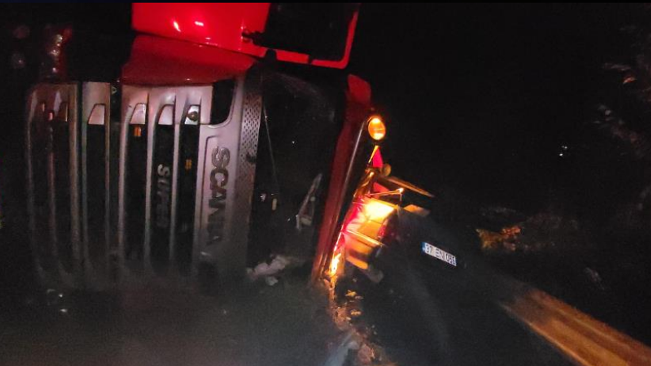 Kaza, Kastamonu-İnebolu karayolu İskir rampası mevkiinde meydana geldi. Edinilen bilgiye göre, Ersin S. idaresindeki 37 EN 069 plakalı otomobil, sürücüsünün direksiyon hakimiyetini kaybetmesi neticesinde, Ömer H. yönetimindeki 37 AEE 604 plakalı sunta yüklü tırla çarpıştı. Sürüklenen otomobilin üzerine tır devrilirken, otomobil tır ile bariyerler arasında sıkıştı. Kazada iki sürücü araçlarda sıkışarak yaralandı. Olay yerine itfaiye, sağlık ve trafik ekipleri sevk edildi. Ekiplerin çalışmasıyla sıkıştıkları yerden kurtarılan sürücüler İnebolu Devlet Hastanesine kaldırıldı. Kazayla ilgili inceleme başlatıldı.