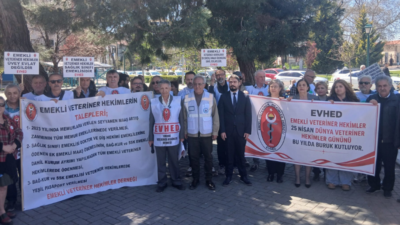 Görür, “Emekli veteriner hekimler derneği olarak Dünya Veteriner Hekimler Günü kapsamında başlattığımız bu basın açıklamaları serisinin ikincisini Trakya’dan başlattık. Bir haftadır yollardayız. Bugün burada final açıklamamızı yapıyoruz. Biz aslında bu günü kutlamak isterdik ama neyi kutlayacağız? Sağlık hizmetleri sınıfında olmamıza rağmen sağlık hizmetlerinden ayrı tutulmamızı mı, emekliler arasındaki derin maaş farklarını mı, yok sayılan emeklerimizi mi?” dedi.