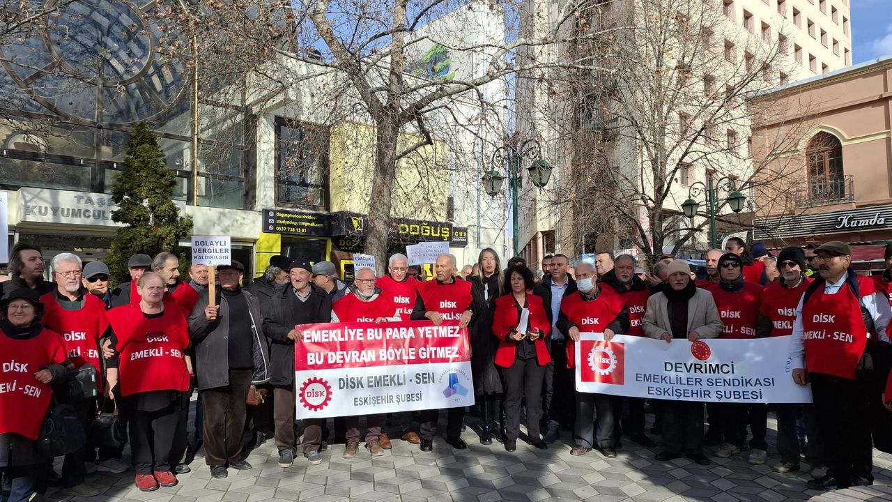 Eskişehir’de DİSK Emekli-Sen üyeleri, Taşbaşı Çarşısı önünde bir araya gelerek emeklilerin yaşadığı ekonomik sorunlara dikkat çekti. Grup adına açıklamayı yapan DİSK Emekli-Sen Eskişehir Şube Başkanı Hatice Kılıç, 2026 yılına girilirken emeklilerin tarihinin en ağır yoksullaşma süreçlerinden biriyle karşı karşıya bırakıldığını söyledi.