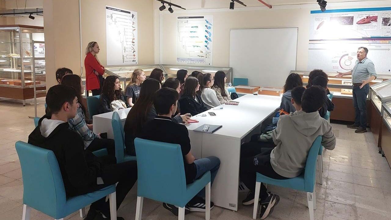 Eskişehir Bilim Olimpiyatları Akademisi eğitimleri devam ediyor. Bu kapsamda biyoloji grubu öğrencileri, ESOGÜ Fen Fakültesi Biyoloji Bölümü öğretim üyeleri Prof. Dr. Davut Ümit Şirin ve Dr. Öğr. Üyesi Hakan Çalışkan tarafından gerçekleştirilen eğitime katıldı. Eğitmenler Tuğba Tuncel ve Ezgi Akkır ile birlikte Olimpiyat Akademisi’ne katılan 25 öğrencinin iştirak ettiği etkinlikte, Zooloji Müzesi bünyesinde incelemeler yapıldı. Söz konusu etkinlik ile öğrencilerin başta TÜBİTAK 2202 Bilim Olimpiyatları Programı olmak üzere ulusal ve uluslararası olimpiyat sınavları hakkında farkındalık kazanmaları hedefleniyor. Bu süreçlere etkin şekilde hazırlanmaları amaçlanan öğrencilerin, akademideki eğitimleri devam ediyor.