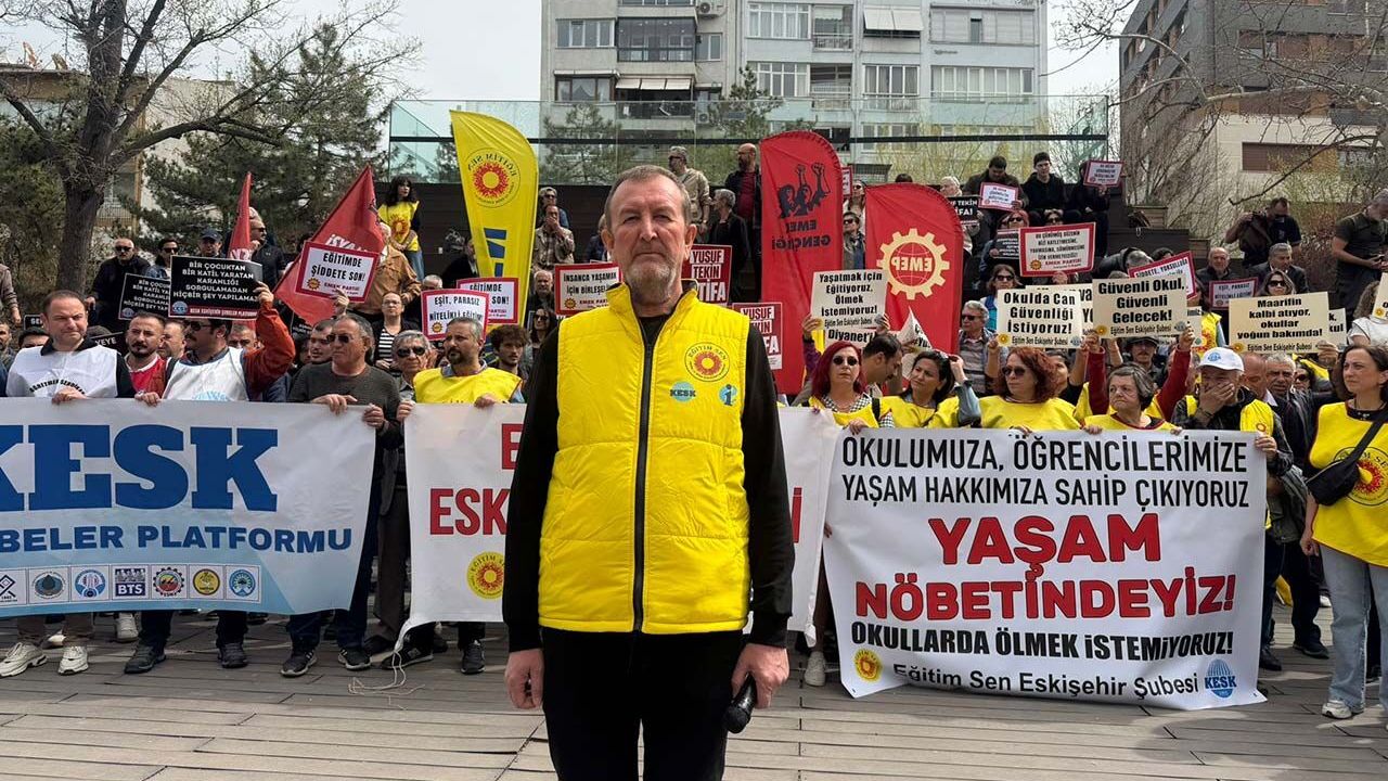 Eğitim Sen Eskişehir Şube Başkanı adına açıklama yapan Özkan Demirkol, Şanlıurfa’nın Siverek ilçesindeki Ahmet Koyuncu Mesleki ve Teknik Anadolu Lisesi’nde yaşanan saldırının ardından Kahramanmaraş’taki Ayser Çalık Ortaokulu’nda meydana gelen ikinci saldırının acıyı daha da büyüttüğünü söyledi.
