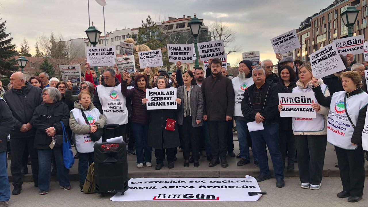 Eylemde Arı’nın gönderdiği mesaj da paylaşıldı. Arı mesajında, “Tek suçum bu ülkede gazetecilik yapmak” diyerek, dosyasına yeni içerikler eklenerek tutukluluğunun gerekçelendirilmeye çalışıldığını ifade etti.