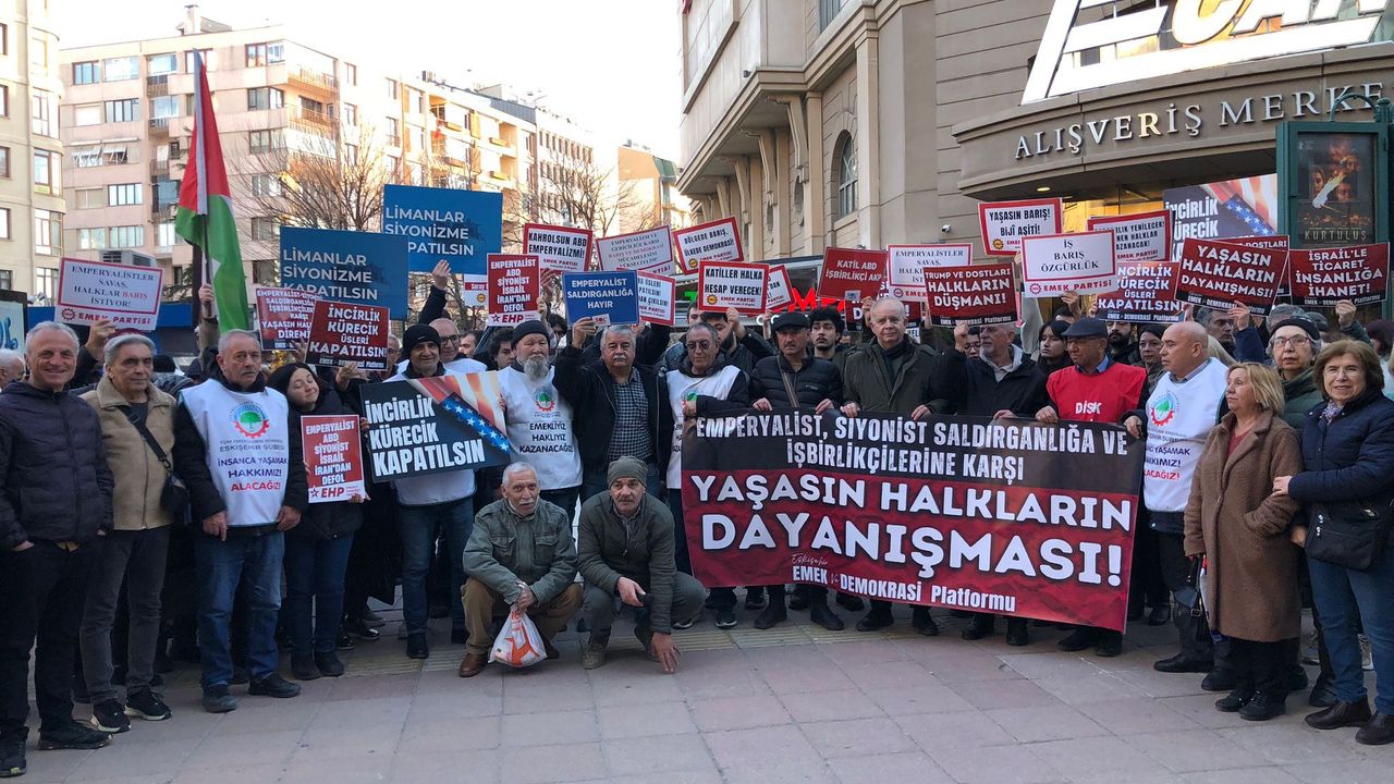 Emek ve Demokrasi Platformu bileşenleri olarak İran halkıyla dayanışma amacıyla meydanlarda olduklarını belirten Yıldırım, Eskişehir’den ABD ve İsrail’e karşı İran halkının yanında olduklarını ifade etti.