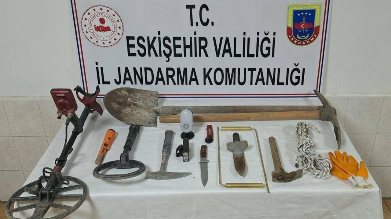 Eskişehir İl Jandarma Komutanlığına bağlı birimler tarafından yapılan çalışmalar neticesinde Odunpazarı ilçesinde şüphelilerin define bulmak amacıyla izinsiz kazı yapacağı bilgisi alındı. Anadolu Mirası Operasyonları kapsamında 3 şüpheli kaçak kazı yaparken suçüstü yakalandı. Kazı alanında yapılan incelemelerde şüphelilere ait olduğu tespit edilen 3 adet dedektör, 8 metre halat, 1 adet kürek, 1 adet kazma ve 10 adet muhtelif kazı malzemesi ele geçirildi. Şüpheliler hakkında adli makamlarca soruşturma başlatıldı.