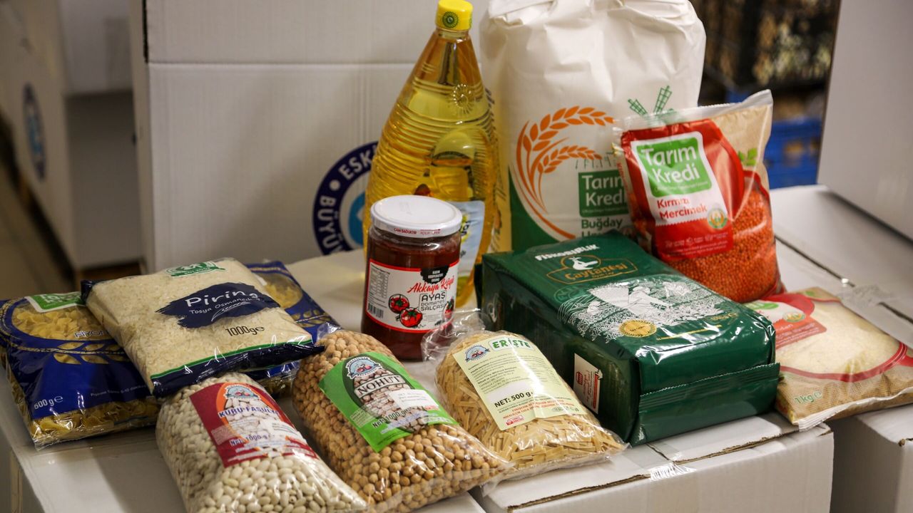 Ramazan için hazırlanan gıda kolilerinde temel ihtiyaç ürünleri yer alıyor. Kolilerde 2 kilogram buğday unu, 1 kilogram nohut, 1 kilogram fasulye, 1 kilogram pilavlık bulgur, Osmancık pirinç, 1 kilogram yeşil mercimek, fiyonk ve burgu makarna, 500 gram erişte, 500 gram çay, 680 gram salça ile 1 litre ayçiçek yağı bulunuyor. Bu içerik, Ramazan sofralarının temel ihtiyaçlarını karşılayacak şekilde özenle planlandı.