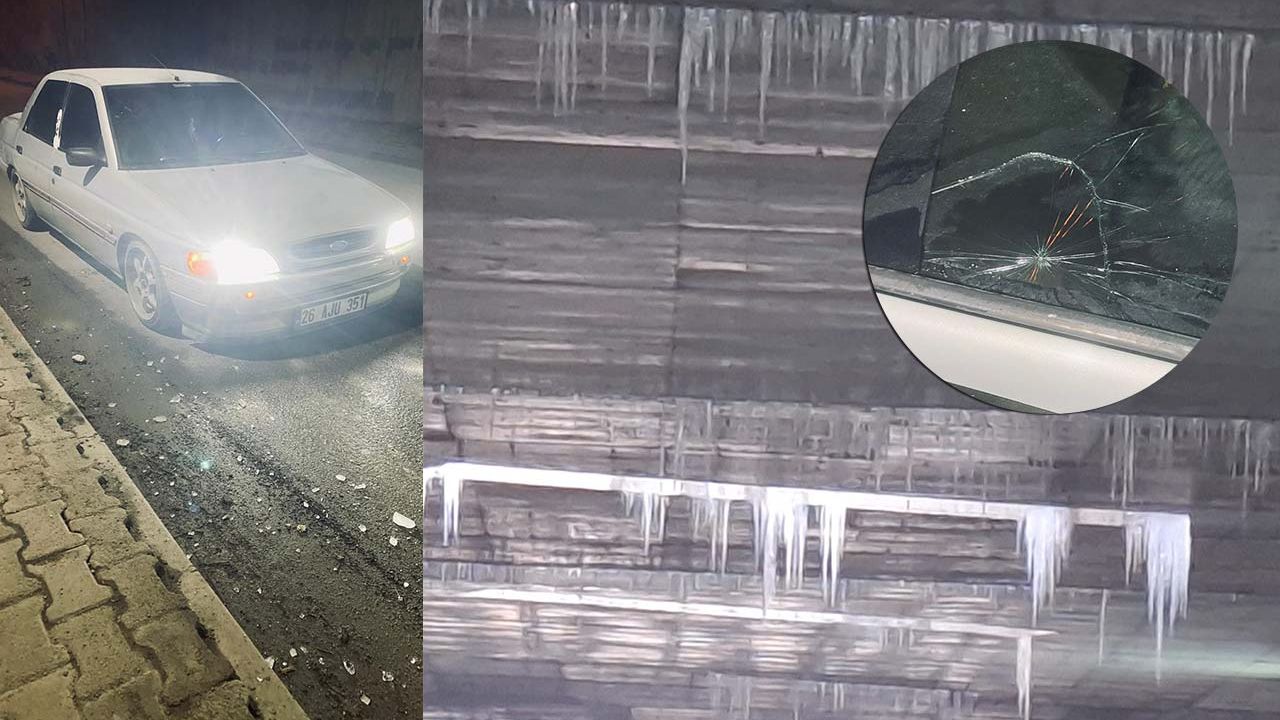 Gündoğdu Mahallesi Söğüt Ağacı Sokak üzerinde bulunan alt geçitte ilerleyen 26 AJU 351 plakalı otomobil, beklenmedik bir tehlikeyle karşılaştı. Alt geçitte biriken buz sarkıtlarının koparak aracın ön camına düşmesi sonucu cam kırıldı.