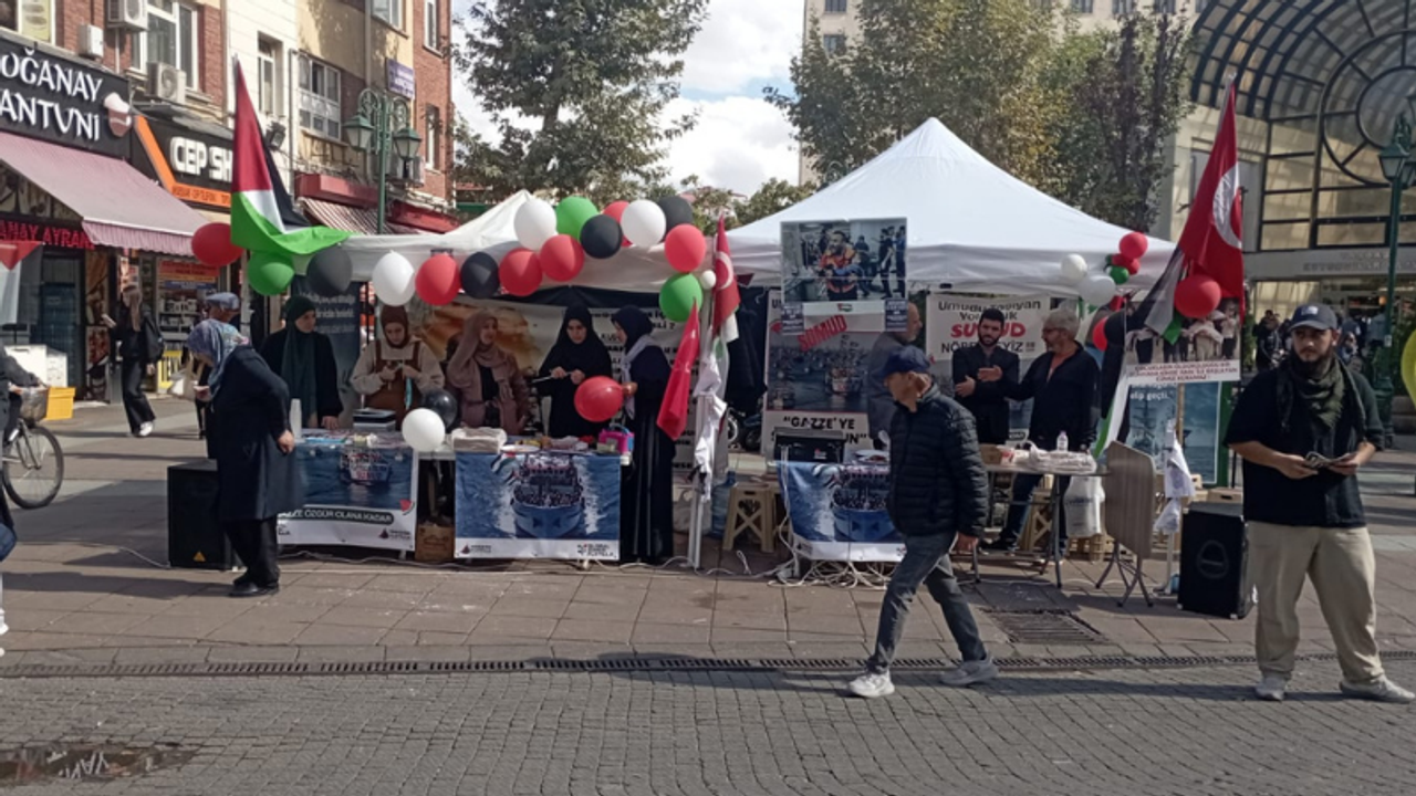 Gazze’de yaşanan ve insanlığın kanayan yarası haline gelen soykırıma dur demek için düzenlenen Uluslar arası SUMUD filosuna yapılanlar Eskişehir’de hem protesto ediliyor hem de SUMUD Deniz filosuna destek veriliyor. Köprübaşı’nda kurulan standa SUMUD’a ve Gazze’ye destek amacıyla kurulan standa vatandaşlar büyük ilgi gösterdi. Sivil toplum kuruluşlarının organize ettiği standa bir taraftan vatandaşlar bilgilendirilirken diğer yandan broşürler dağıtıldı. Kurulan standa Eskişehirliler büyük ilgi gösterdi.
