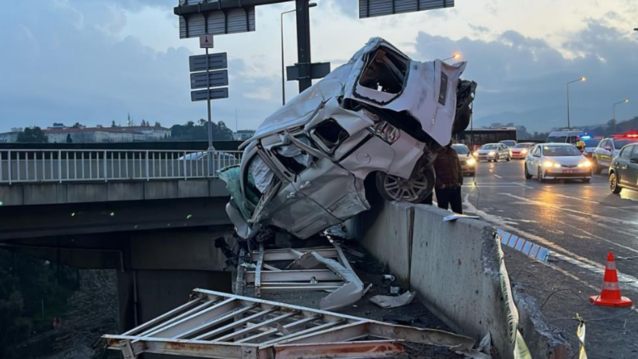 Kaza, akşam saatlerinde Uçanyol mevkii Homeros Bulvarı üzerinde meydana geldi. Edinilen bilgiye göre, Konak istikametine seyir halinde olan 42 AFV 856 plakalı iş makinesi yüklü kamyonun frenleri boşaldı. Sürücüsünün kontrolünden çıkan kamyon, önünde seyreden 35 BDK 20 plakalı otomobile arkadan çarptı. Çarpmanın şiddetiyle savrulan otomobil, yol kenarındaki bariyerleri kırarak köprüde asılı kaldı. Kamyonun kasasında yüklü bulunan iş makinesi ise köprüden aşağı düştü. Kazayı görenlerin ihbarı üzerine olay yerine polis, itfaiye ve sağlık ekipleri sevk edildi. Kazada yaralanan M.Ş. (49), B.E. (19) ve İ.B.K. (23) sağlık ekiplerinin olay yerindeki ilk müdahalesinin ardından ambulanslarla çevredeki hastanelere kaldırıldı. Hastaneye kaldırılan yaralılardan B.E. ve M.Ş.'nin hayati tehlikesinin bulunduğu öğrenildi. Diğer yaralı İ.B.K.'nin ise sağlık durumunun iyi olduğu belirtildi. Kaza nedeniyle trafik akışında aksamalar yaşanırken, olayla ilgili başlatılan soruşturma sürüyor.