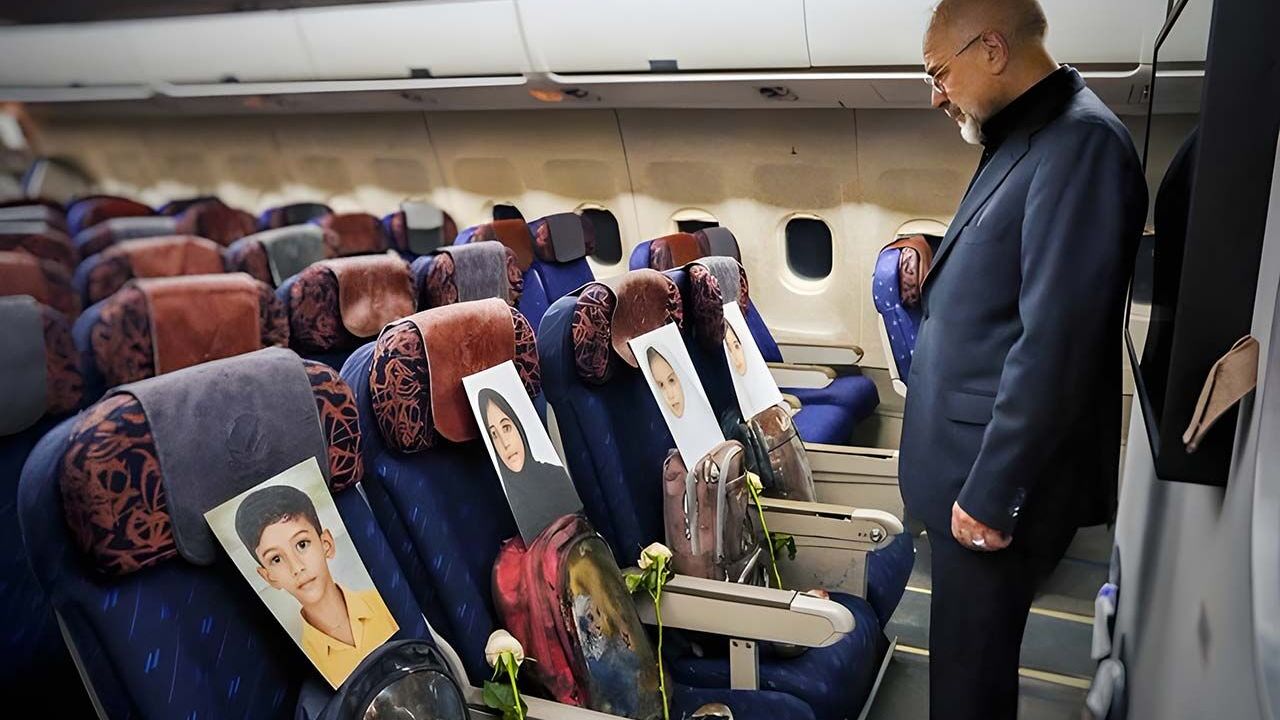 Ortaya çıkan görüntülerde, uçaktaki koltuklara ABD ve İsrail saldırılarında Minab’da yaşamını yitirdiği belirtilen çocuklara ait fotoğrafların yerleştirildiği görüldü.