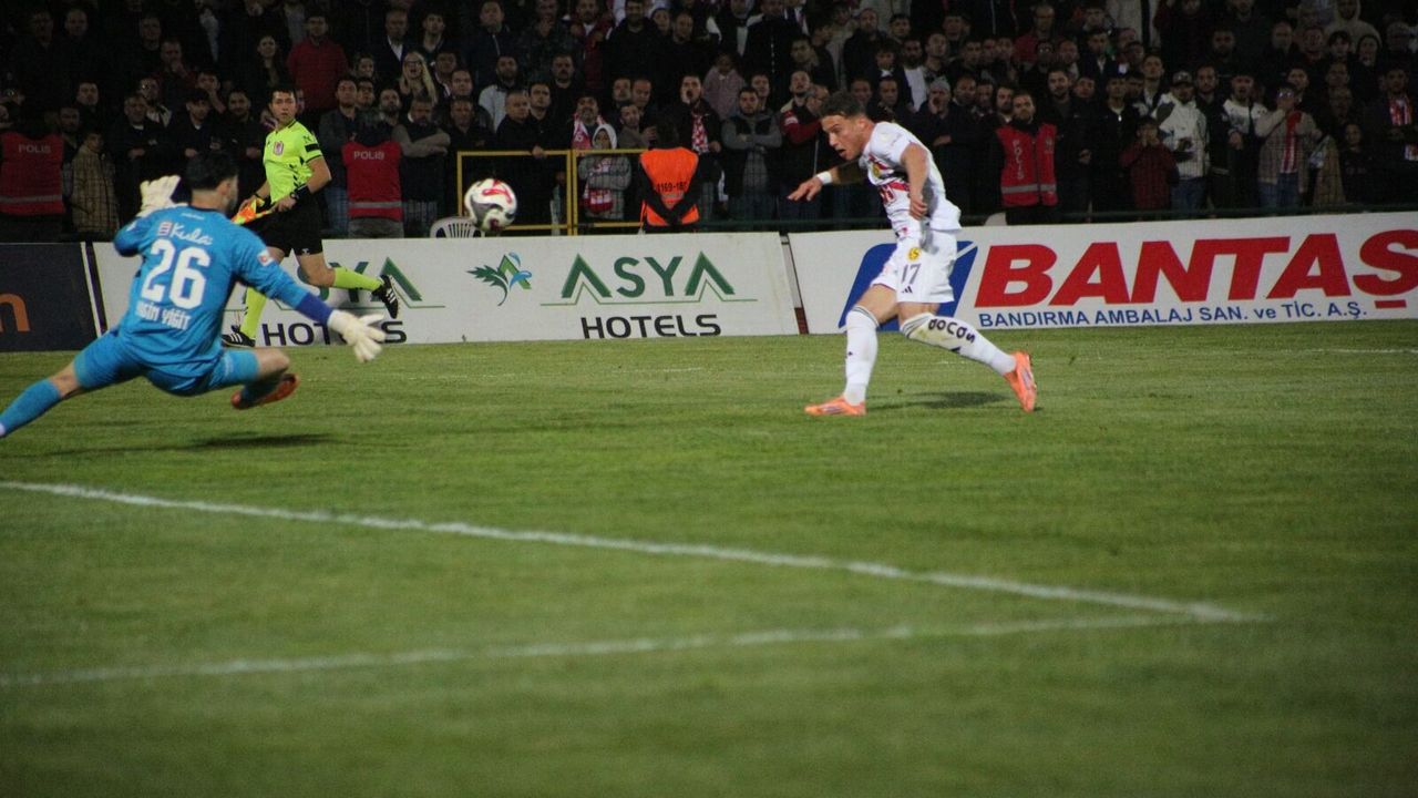 Eskişehirspor’un başarılı kanat oyuncularından İsmail Kulet, karşılaşmanın ilk yarısında net fırsattan yararlanamadı. Çaprazda kaleci ile karşı karşıya kalan Kulet, müsait pozisyonda topu kalecinin üzerine nişanladı. Karşılaşmanın ilk yarısında yakaladığımız en net pozisyonlardan birisinde Kulet, topu ağlara gönderemedi…