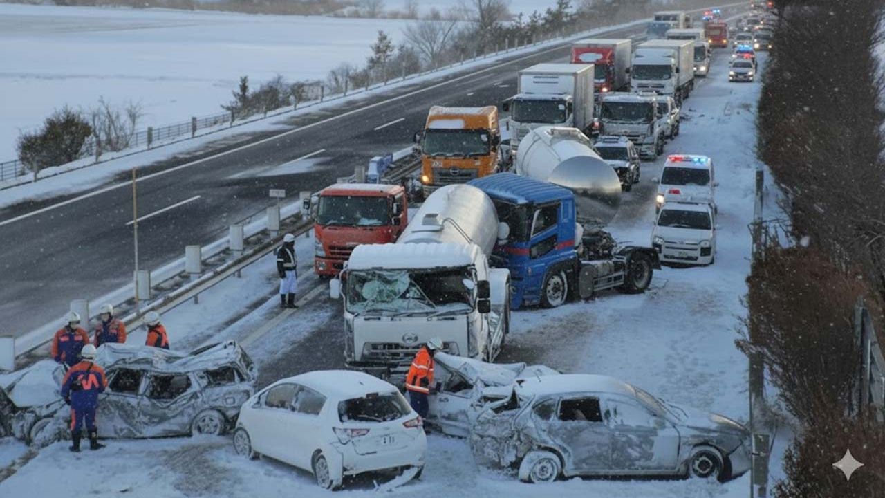 Japonya’nın başkenti Tokyo’nun kuzeyinde yer alan Gunma eyaleti facia gibi bir kazaya sahne oldu. Olumsuz hava şartlarının etkisiyle yerel saatle 19.30 sıralarında Minakami kasabası yakınlarındaki Kan-etsu Otoyolu'nda yaklaşık 50 araç birbirine girdi. Yılbaşı tatili yoğunluğunun ilk saatlerinde 2 kamyonun çarpışmasıyla başlayan kaza, kar ve buzlanmanın etkisiyle kısa sürede dev bir zincirleme faciaya dönüştü. Kazaya karışan yaklaşık 50 aracın 17’sinde yangın çıkarken, olay yerine çok sayıda itfaiye ekibi sevk edildi. Alevler yaklaşık 7 buçuk saatlik çabanın ardından kontrol altına alınabildi. Kazada biri otomobilde, biri kamyonda bulunan 2 kişinin hayatını kaybettiği, 5’i ağır olmak üzere 26 kişinin yaralandığı açıklandı. Kaza nedeniyle Kan-etsu Otoyolu'nun belirli bölümleri uzun süre trafiğe kapalı kaldı. Olay sırasında bölgenin yoğun kar yağışı uyarısı altında olduğuna dikkat çeken yetkililer, kazanın düşük görüş mesafesi ve buzlanma nedeniyle meydana geldiğinin değerlendirildiğini belirtti. Kazanın kesin nedenini belirlemek üzere detaylı soruşturma başlatıldı.