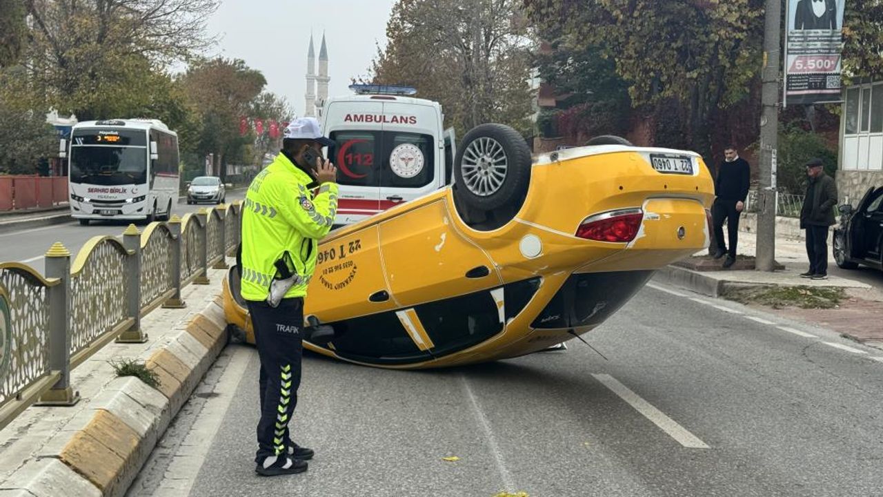 Edirne’nin Atatürk Bulvarı’nda 22 T 0460 plakalı ticari taksisiyle seyreden sürücü Vezattin Başkurt, önüne çıkış yapan araca çarpmamak için manevra yaptığı esnada orta refüje çarptı.