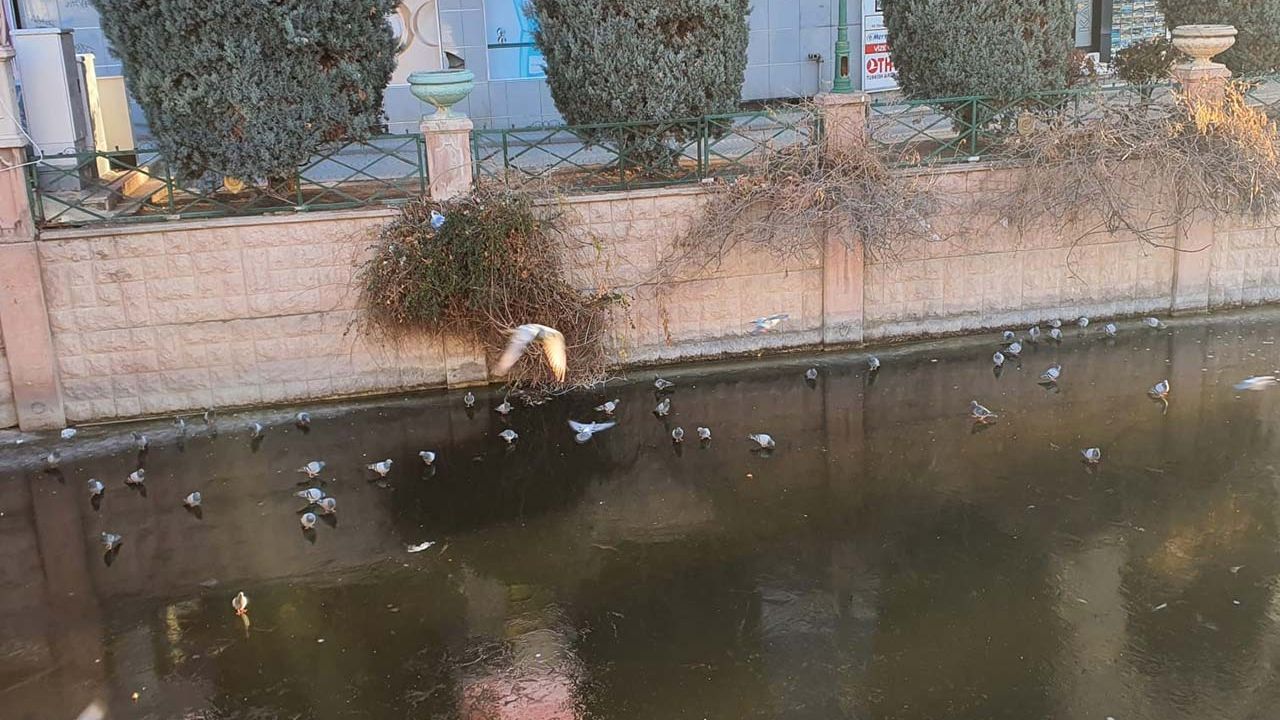 Dün gece hava sıcaklığının eksi 12 dereceye kadar düştüğü Eskişehir'de, ayaz ve dondurucu soğuklar etkisini sürdürüyor. Sabah saatlerinde hava soğukluğunun eksi 9 dereceye düştüğü kent merkezinden gecen Porsuk Çayı'nın büyük bölümünün yüzeyi buzla kaplandı. Bu durumu fırsata çeviren güvercinler, buzlu yüzey üzerinde rahatlıkla gezindi, yiyecek bir şeyler aradı. Çayın farklı yerlerinde gözlenen güvercinlerin bu rahatlığı ilginç görüntü oluşurdu.