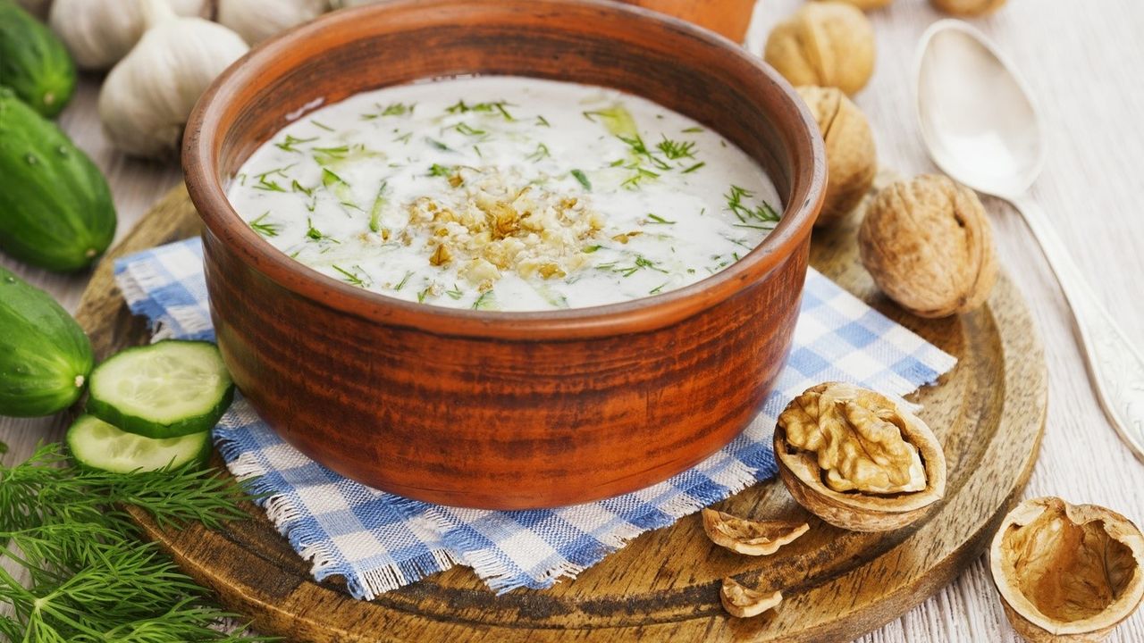 Yoğurt, un ve su çırpılır. Tencereye alınarak kaynayana kadar karıştırılır. Sarımsak ve tuz eklenir. Üzerine yağda kızdırılmış nane dökülür.