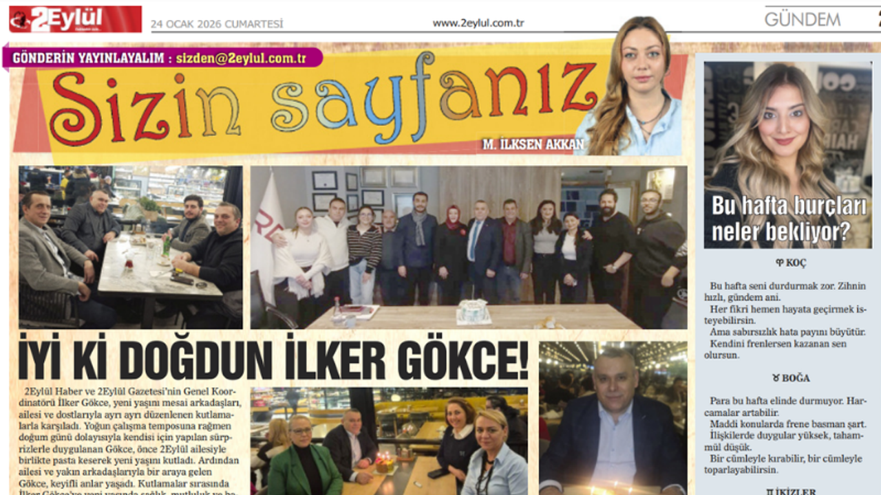2Eylül Haber ve 2Eylül Gazetesi’nin Genel Koordinatörü İlker Gökce, yeni yaşını mesai arkadaşları, ailesi ve dostlarıyla ayrı ayrı düzenlenen kutlamalarla karşıladı. Yoğun çalışma temposuna rağmen doğum günü dolayısıyla kendisi için yapılan sürprizlerle duygulanan Gökce, önce 2Eylül ailesiyle birlikte pasta keserek yeni yaşını kutladı. Ardından ailesi ve yakın arkadaşlarıyla bir araya gelen Gökce, keyifli anlar yaşadı. Kutlamalar sırasında İlker Gökce’ye yeni yaşında sağlık, mutluluk ve başarı dilekleri iletilirken, Gökce de kendisini yalnız bırakmayan herkese teşekkür etti. Bizde 2Eylül olarak Gökce’ye tekrardan mutlu yıllar diliyoruz.