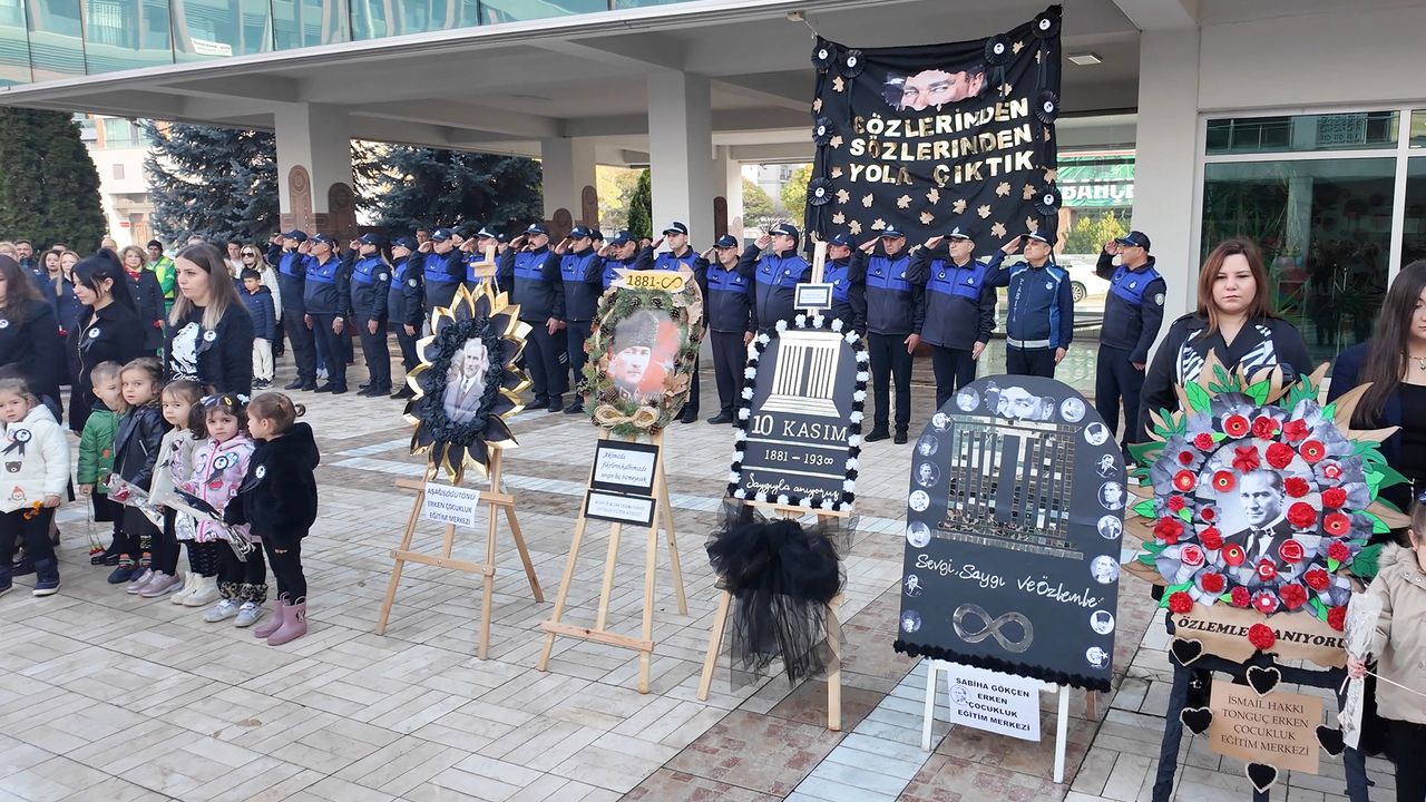 Saat 09.05’i gösterdiğinde çalan sirenler eşliğinde saygı duruşunda bulunuldu ve İstiklal Marşı okundu. Ardından Çağfen Koleji öğrencileri, “Atatürk” adlı şiirlerini seslendirdi.