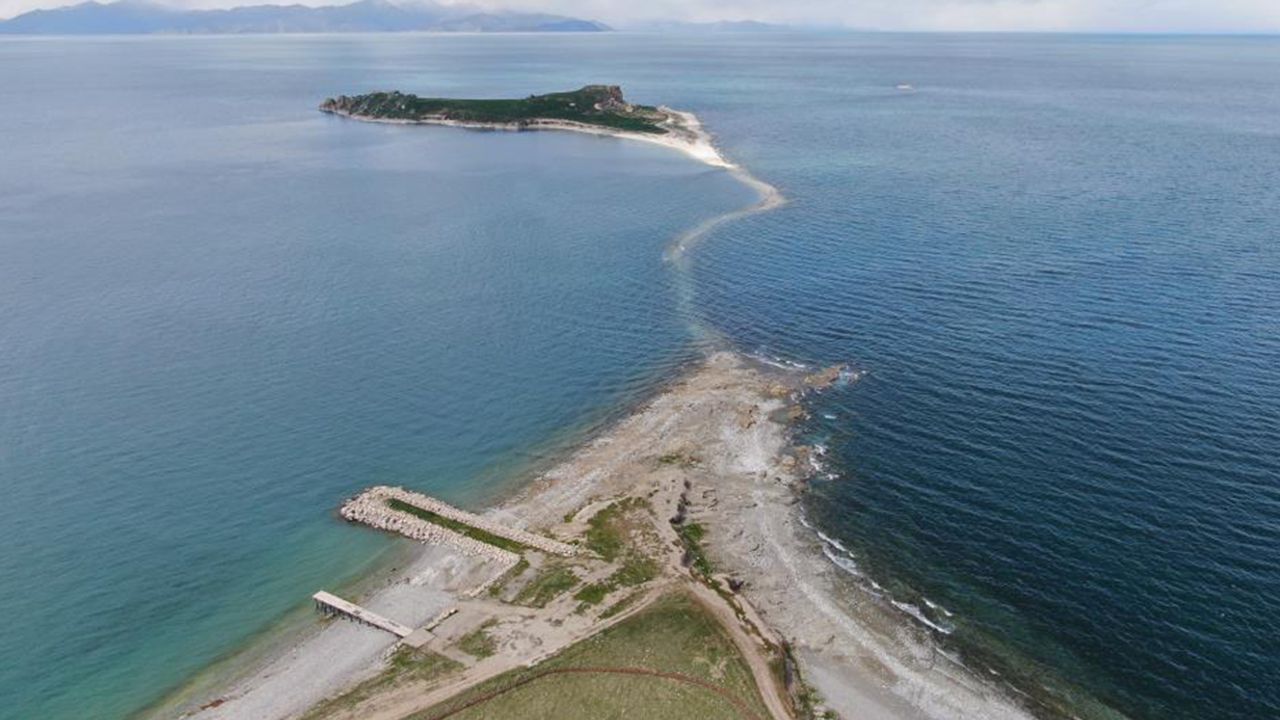 Van Yüzüncü Yıl Üniversitesi (Van YYÜ) Su Ürünleri Fakültesi Dr. Öğretim Üyesi Mustafa Akkuş, "Van Gölü 3 bin 712 metrekarelik alanı ile beraber Marmara Denizi'nin yaklaşık 3'te 1 büyüklüğünde ve ülkemiz iç sularındaki en büyük gölü oluşturuyor. Gölde büyük olarak üç tane ada var. Çarpanak Adası, Van Gölü'ndeki kıyıya en yakın adalardan. Adaya ulaşmak tekne ile ancak mümkün oluyor. Son yıllarda özellikle 2025 yılında kış aylarındaki yağışlarda büyük düşüş yaşandı. Yaz aylarında da sıcaklıkların mevsim normallerinin üstünde seyretmesiyle beraber Van Gölü'nde ciddi bir su kaybı oldu. Göl yavaş yavaş kıyı çizgisinde geriye doğru çekilmeye başladı. Şu anda bulunduğumuz nokta Çarpanak Adası'nın hemen karşısı. Fazla değil 3-5 yıl önce burası tamamen sular altındayken bugün bir kara parçası haline dönüşmüş. Çarpanak Adası'ndan kıyıya doğru olan kara parçası gitgide açığa çıkıyor. Şu anda gölle kara parçası arasında neredeyse 200-300 metre gibi çok kısa bir mesafe kalmış. Şayet 2026 yılındaki mevsim yine sıcak seyreder, kış aylarında yağmur yağmazsa muhtemelen adayla kara arasındaki bağlantı biraz daha küçülecek. 3-5 sene sonra muhtemelen adaya insanlar yürüyerek gidip gelebilecek. Ama bizler ümit ediyoruz ki tekrardan bol şekilde yağışlar yağar, Van Gölü yükselir ve Çarpak Adası Van Gölü'nün mavi suları ile çevrili bir halde olur" diye konuştu.