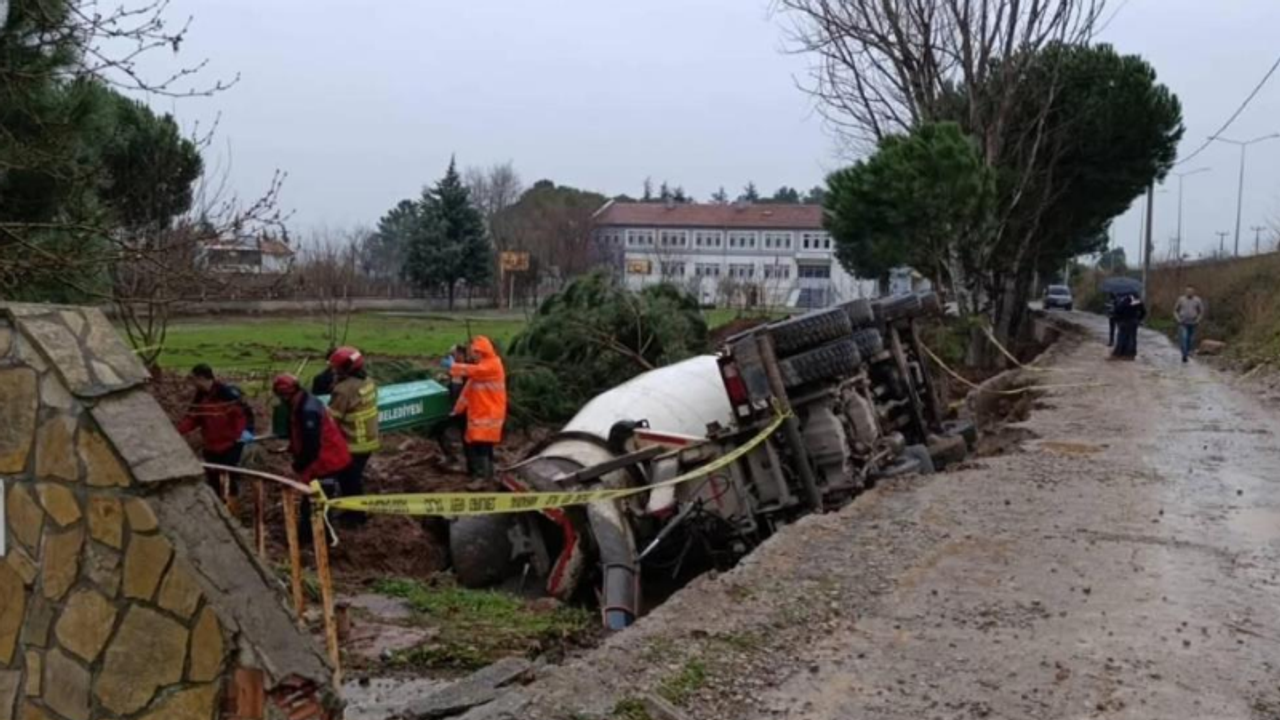 Olay, Balıkesir'in İvrindi ilçesine bağlı Gökceyazı Mahallesi'nde meydana geldi. Gökçeyazı Çok Programlı Lise bahçesinde istinat duvarı yapım çalışması yapıldığı esnasında, zeminin çökmesi sonucu 10 BY 553 plakalı beton mikseri devrildi. Yan yatan beton mikserinin çarparak devirdiği ağaçlar çalışanların üzerine yıkıldı. Kaza sonrası yıkılan ağacın altında kalan Şakir Özcan isimli işçi hayatını kaybetti. Beton mikseri sürücüsü S.U. (57) da yaralandı. Balıkesir Atatürk Şehir Hastanesine kaldırılan S.U.'nun hayati tehlikesinin bulunmadığı öğrenildi. Kaza sonrası olayla ilgili olarak soruşturma başlatıldı.